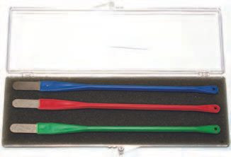 Diamond spatula kit: contains 1 coarse grit (green) spatula, 1 medium grit (red) spatula, 1 fine grit (blue) spatula