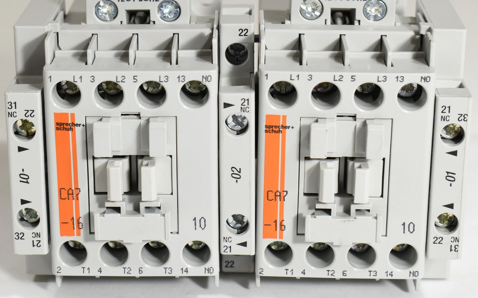 CAU7-16-24-24Z – Reversing contactor w/main amperage and voltage of 16amp and 24V-AC coil respectively Total 2NO/4NC auxiliaries