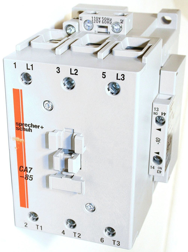IEC, contactor, rated for 85A, 120VAC coil.